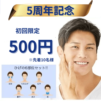 ・5年間の感謝を込めた【5周年記念】ヒゲ脱毛6部位500円ポッキリ(先着10名様)