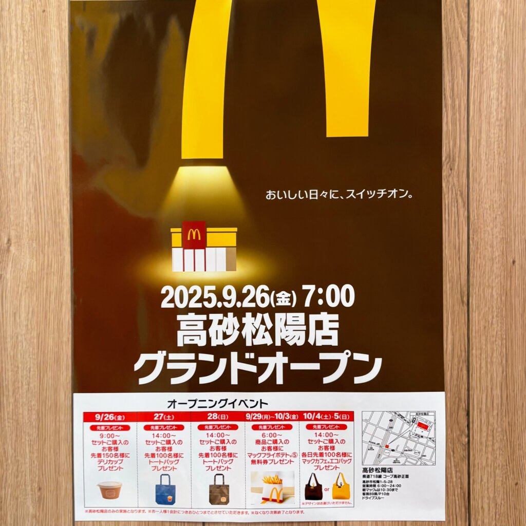 【開店】マクドナルド高砂松陽店が9/26(金)朝7時グランドオープン!オープニングイベントで先着プレゼントも!