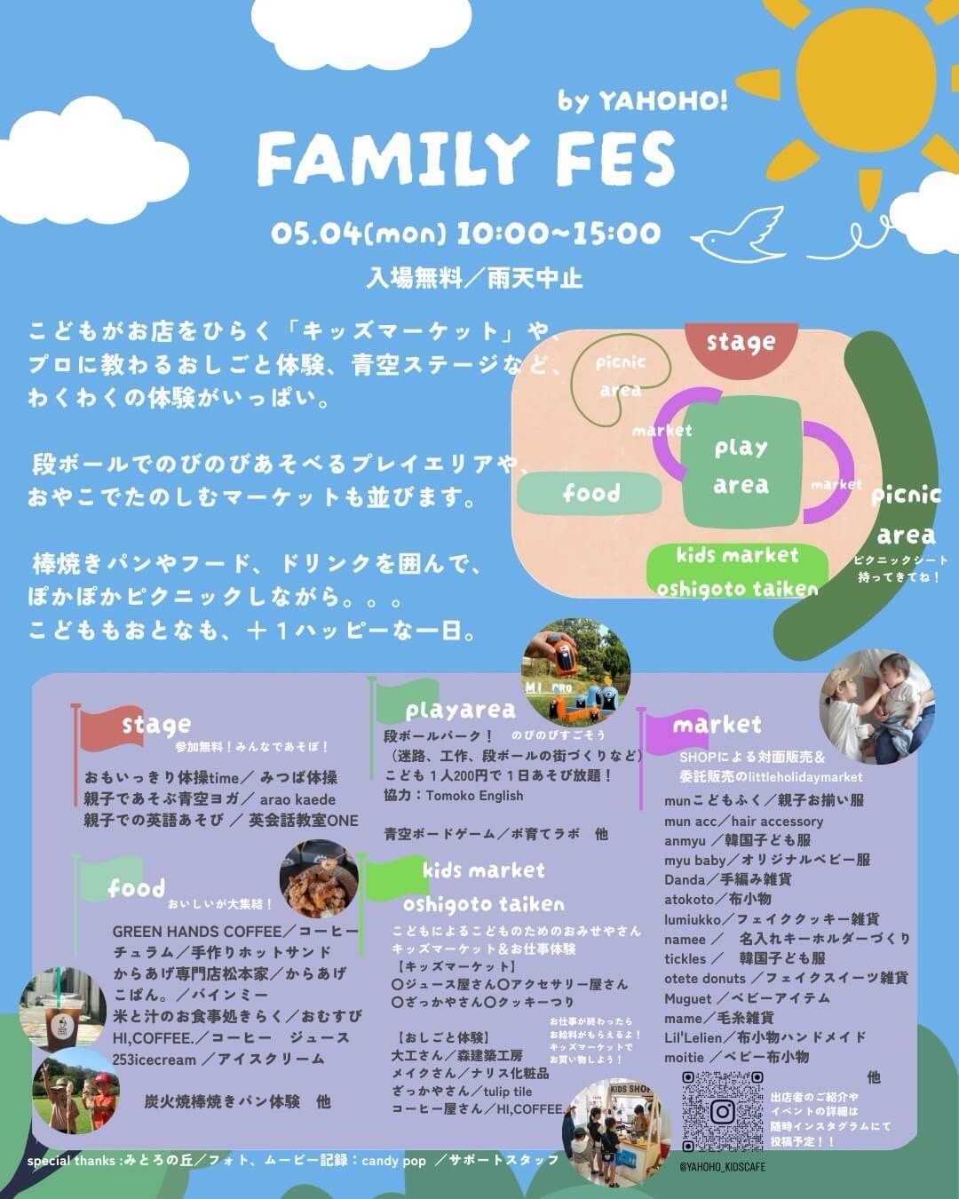 5/4(月・祝)FAMILY FES by YAHOHO!がみとろの丘で開催!マルシェ・おしごと体験・ステージ・ワークショップなど!