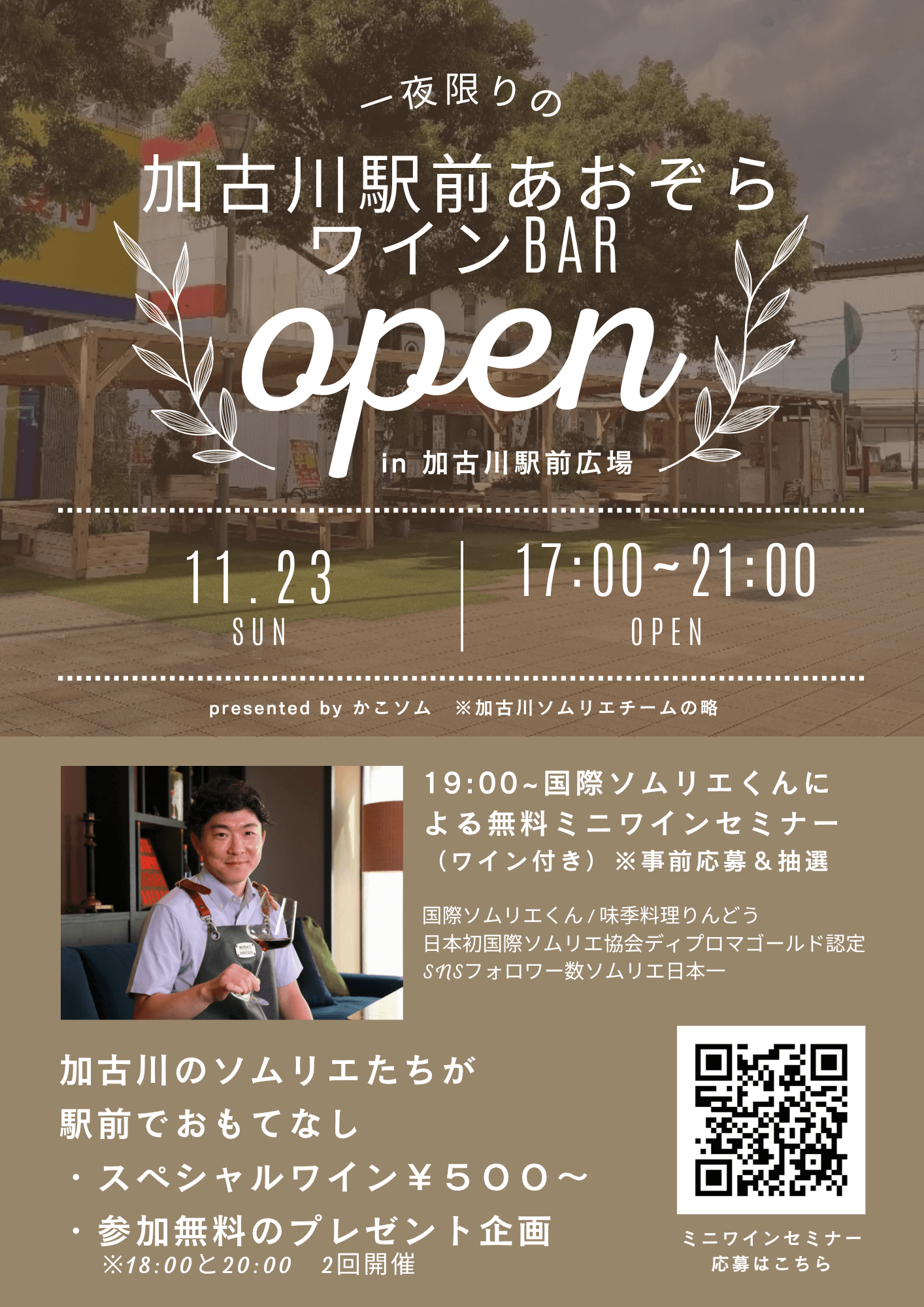 料金は1ドリンク付き2千円、18歳以下は無料です。フードは播州ひろめ隊が担当して、この日だけのメニューが揃います。