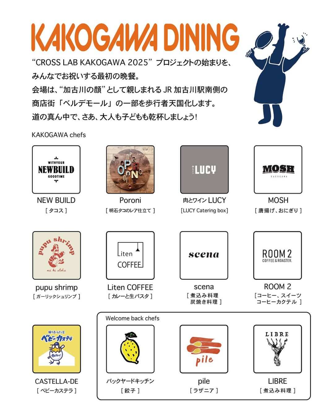 2025年10月3日(金)、ベルデモール商店街の一部を歩行者天国にして、KAKOGAWA DININGが開催されます! 開催時間は16時から21時まで。