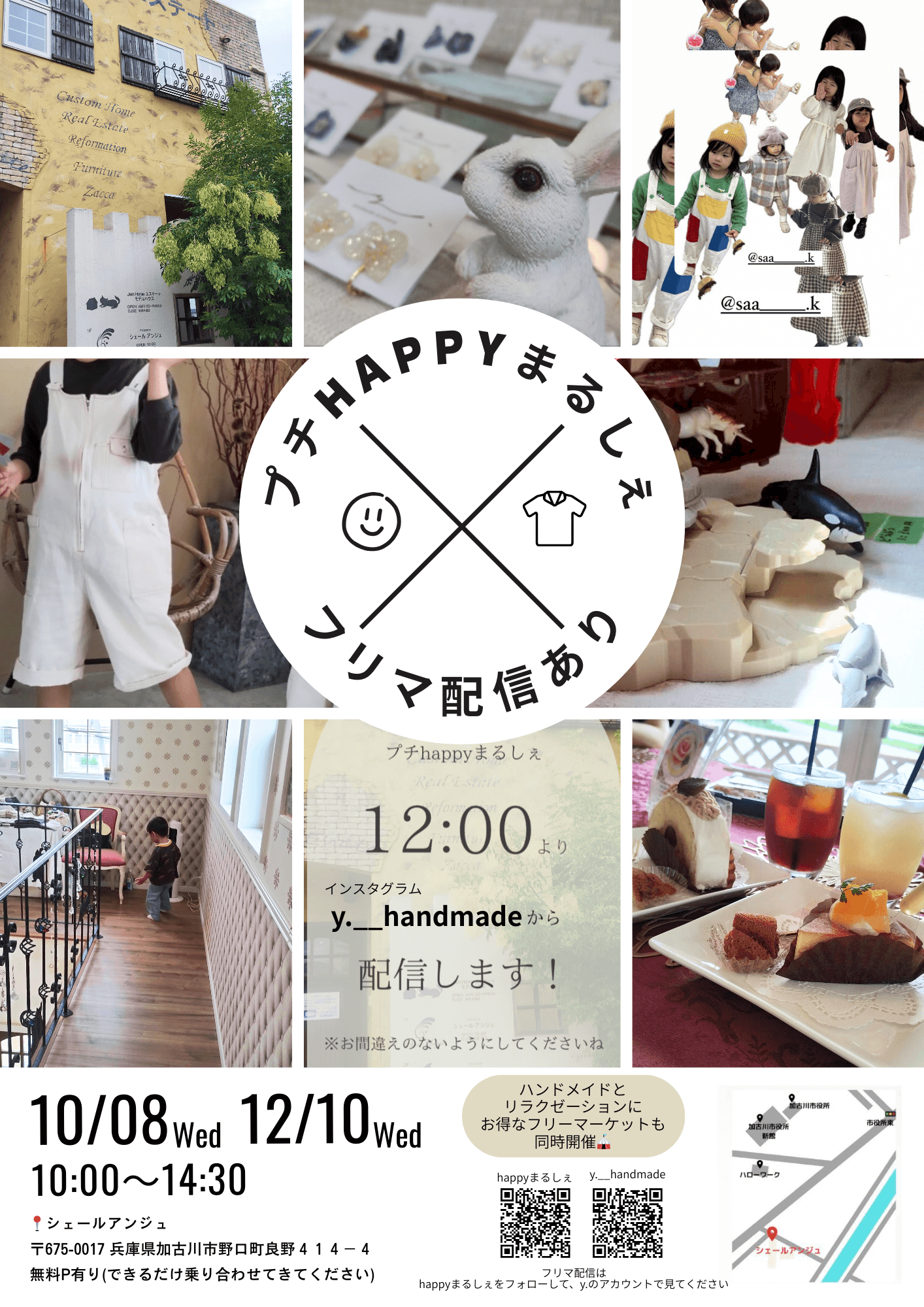 2025年10月8日(水)、野口町良野のケーキ屋さんシェールアンジュにて、プチhappyまるしぇが開催されます! 開催時間は10時から14時半まで。