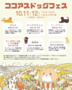 2025年10月11日(土)10月12日(日)の2日間、加古川河川敷どうぶつの森広場付近にて、ココアスドッグフェスが開催されます! 開催時間は両日とも10時から15時まで。入場無料・雨天中止。