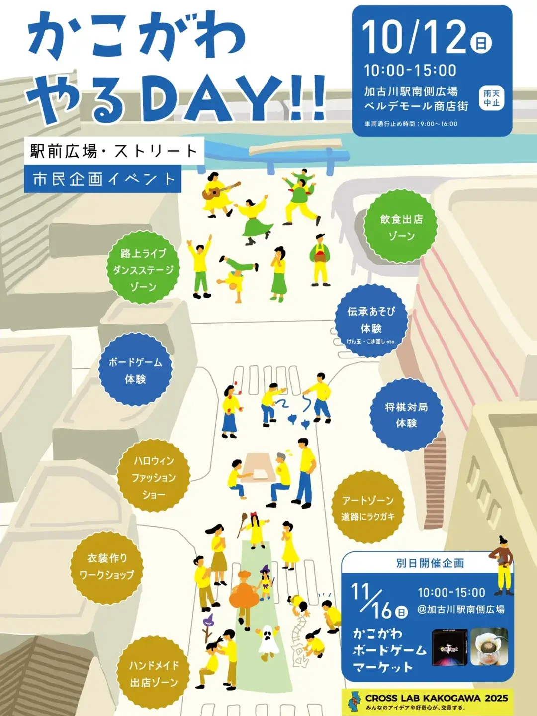 加古川駅前の使い方をみんなで考える「CROSS LAB KAKOGAWA」の一環として開催されます。