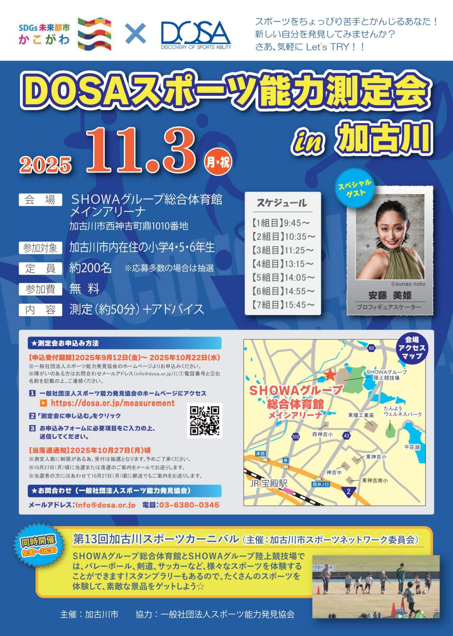 DOSAスポーツ能力測定会in加古川も同時開催されています。スペシャルゲストはプロフィギュアスケーターの安藤美姫さん。