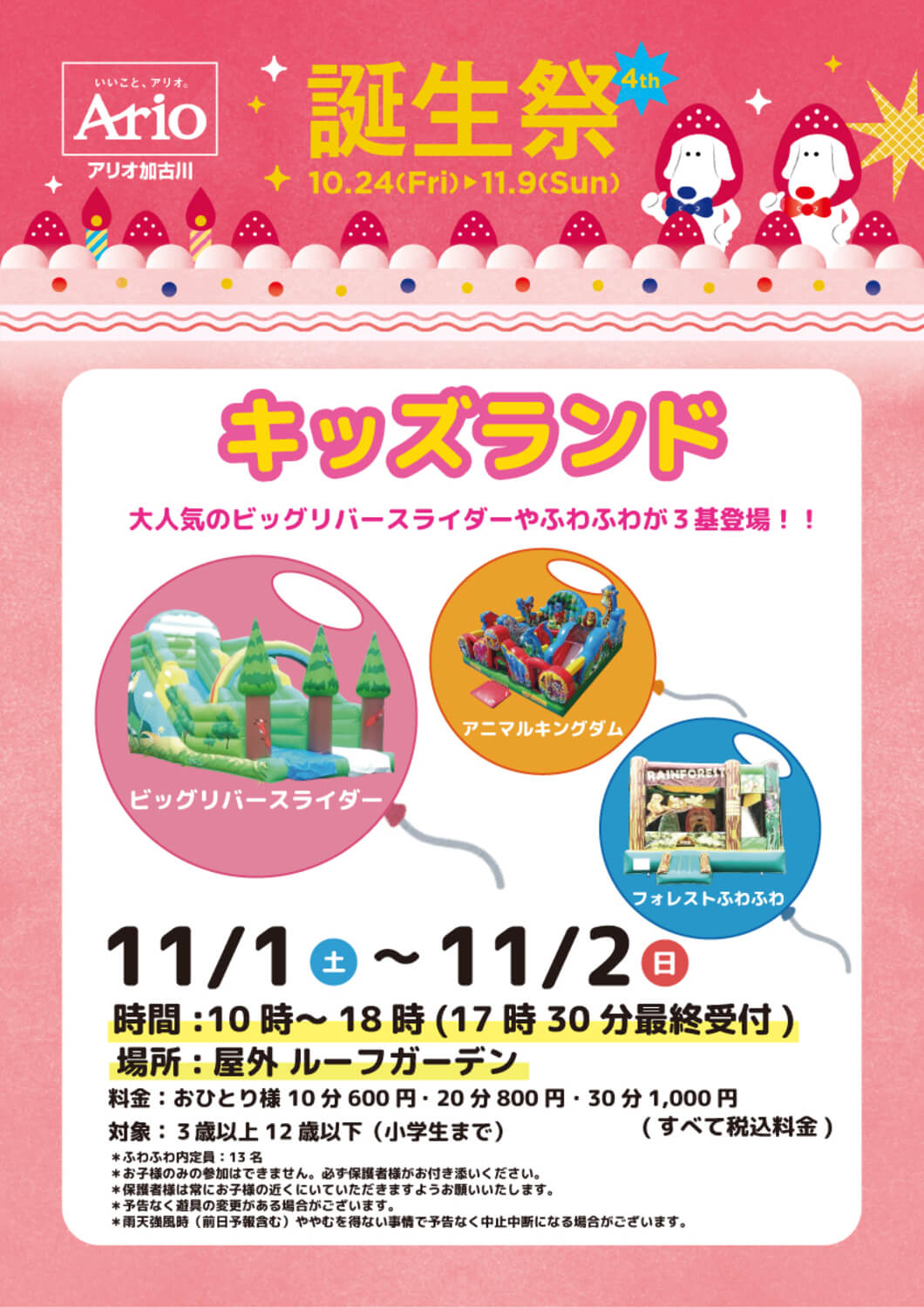 11/1(土)11/2(日)キッズランド at アリオ加古川