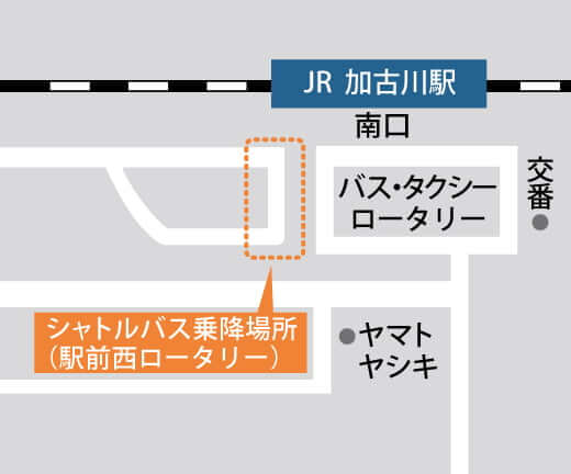 無料シャトルバスが加古川中央市民病院と加古川駅西ロータリー間を9時30分~15時30分まで30分間隔で運行します。