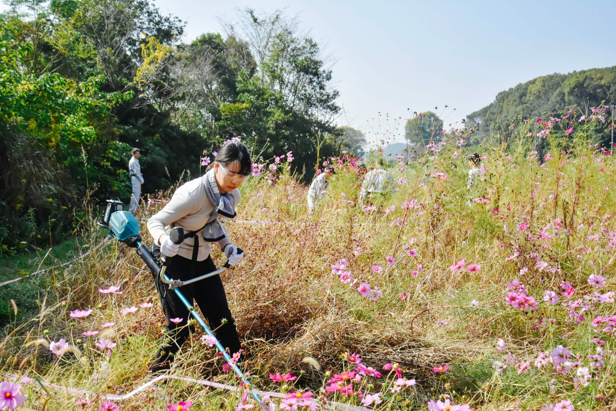 午前中には農村の課題となっている草刈りをリレー形式の競技としておこない、速さやチームワークなどの観点から採点して実力を競います。午後には、地域の魅力を知っていただくために蓮根掘りが行われます。イベントでは、食事を売る売店も開かれます。