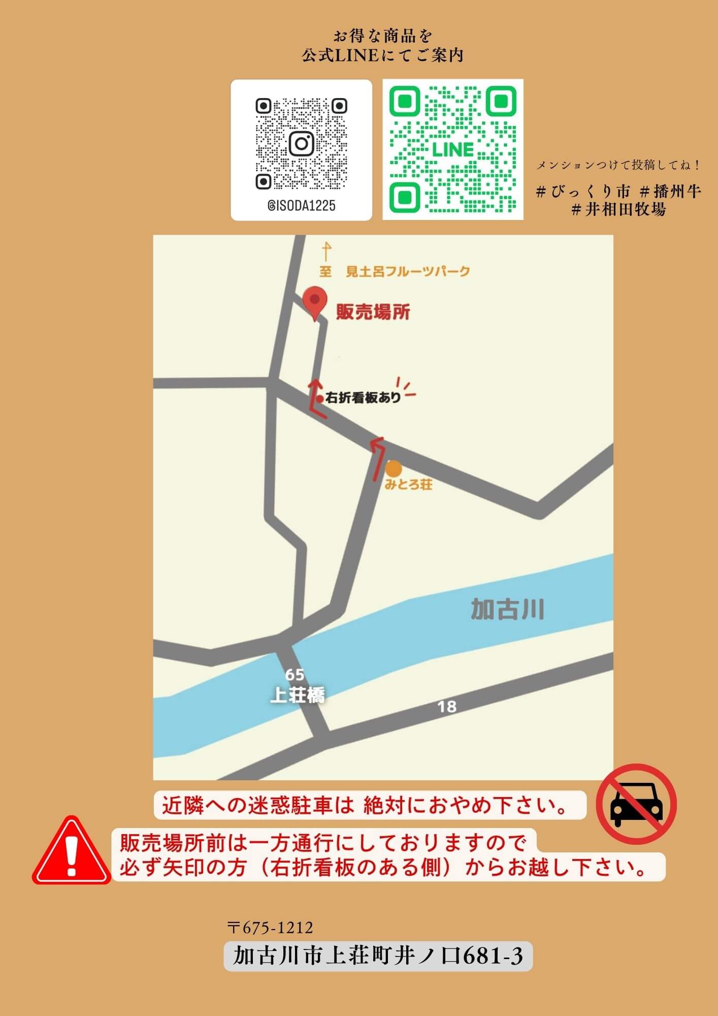 販売場所前は一方通行になっていますので、下記マップを参考に矢印のある方からご来場くださいとのことです!