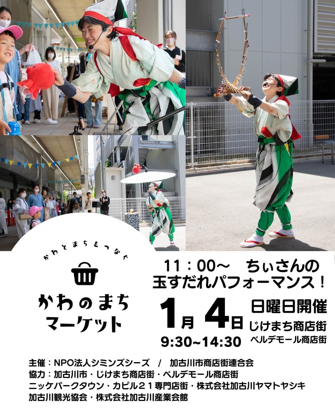 2026年1月4日(日)、じけまち商店街・ベルデモール商店街にて、かわのまちマーケットが開催されます! 開催時間は9時半から14時半まで。