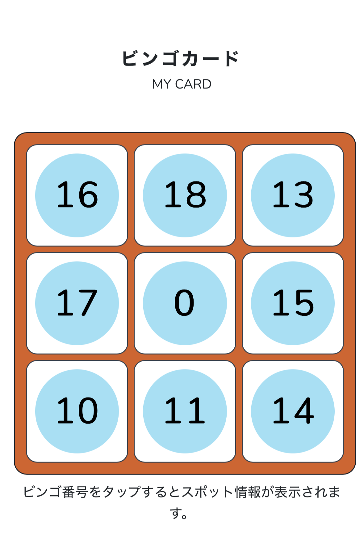 ビンゴカードはこんな感じ。人によって並び順が違うのでしょうか。