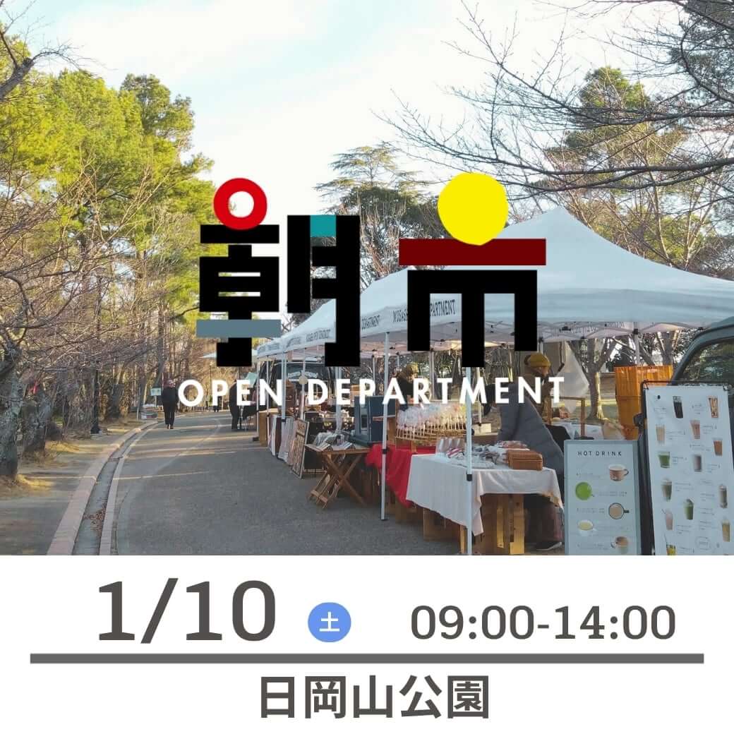 開催時間は9時から14時まで。1月は毎週日岡山公園さくら並木通り辺りで開催予定です!