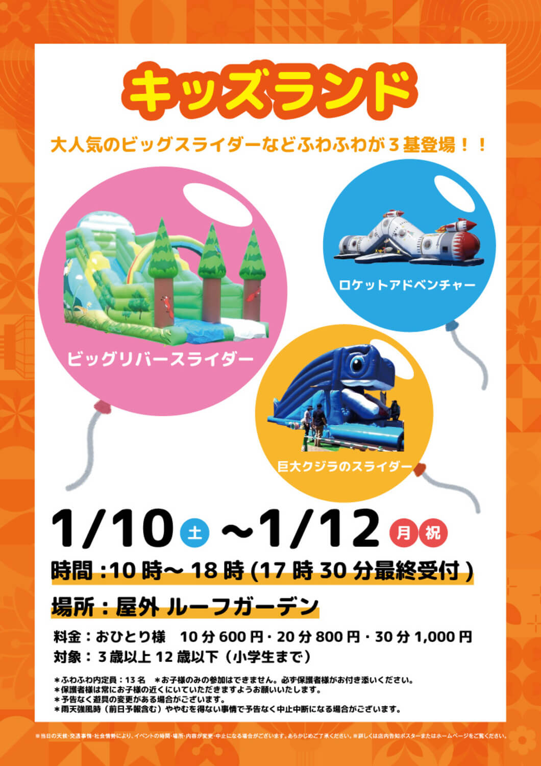 1/10(土)~1/12(月・祝)キッズランド at アリオ加古川