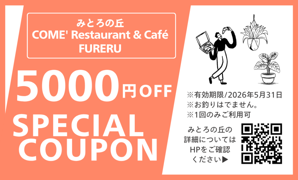 2等(2本):COME’Sレストラン・植物ショップFURERUで使える金券5,000円相当