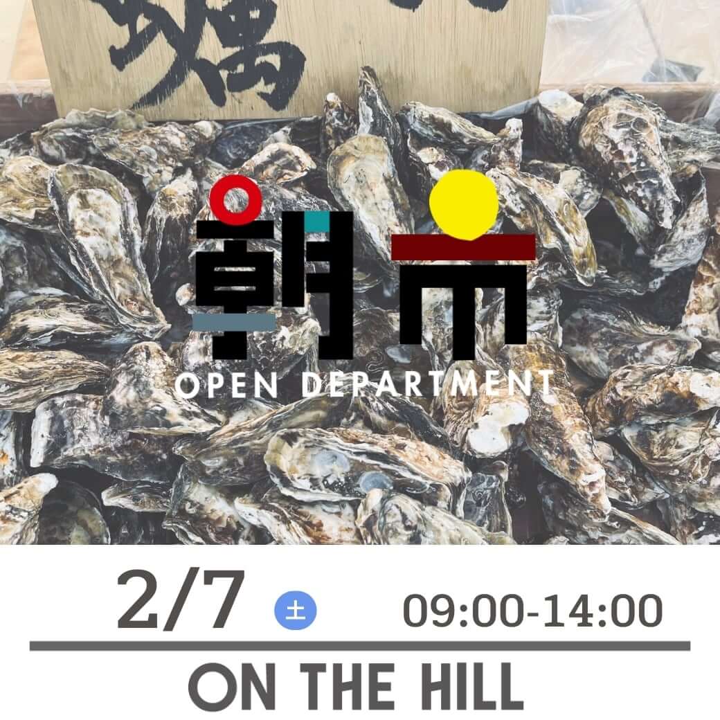 開催時間は9時から14時まで。今週はON THE HILLのエントランスサイド。暖助で焼いた鮭ごはん定食やON THE HILLベーカリー&レストランの期間限定クラムチャウダー。