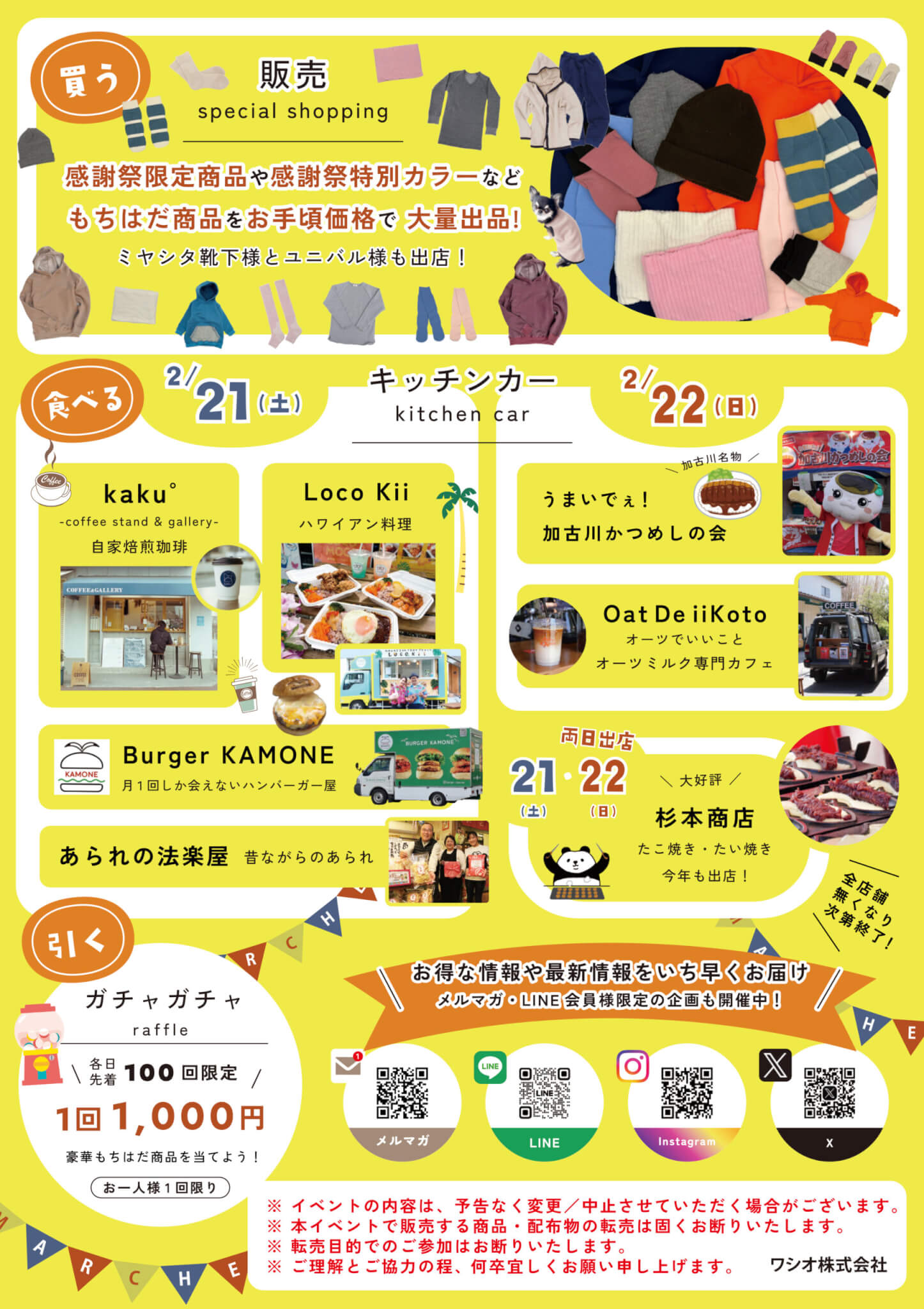 2/21(土)2/22(日)もちはだ感謝祭2026がワシオ株式会社加古川本社工場にて開催!限定品や特別カラー販売!キッチンカー出店!