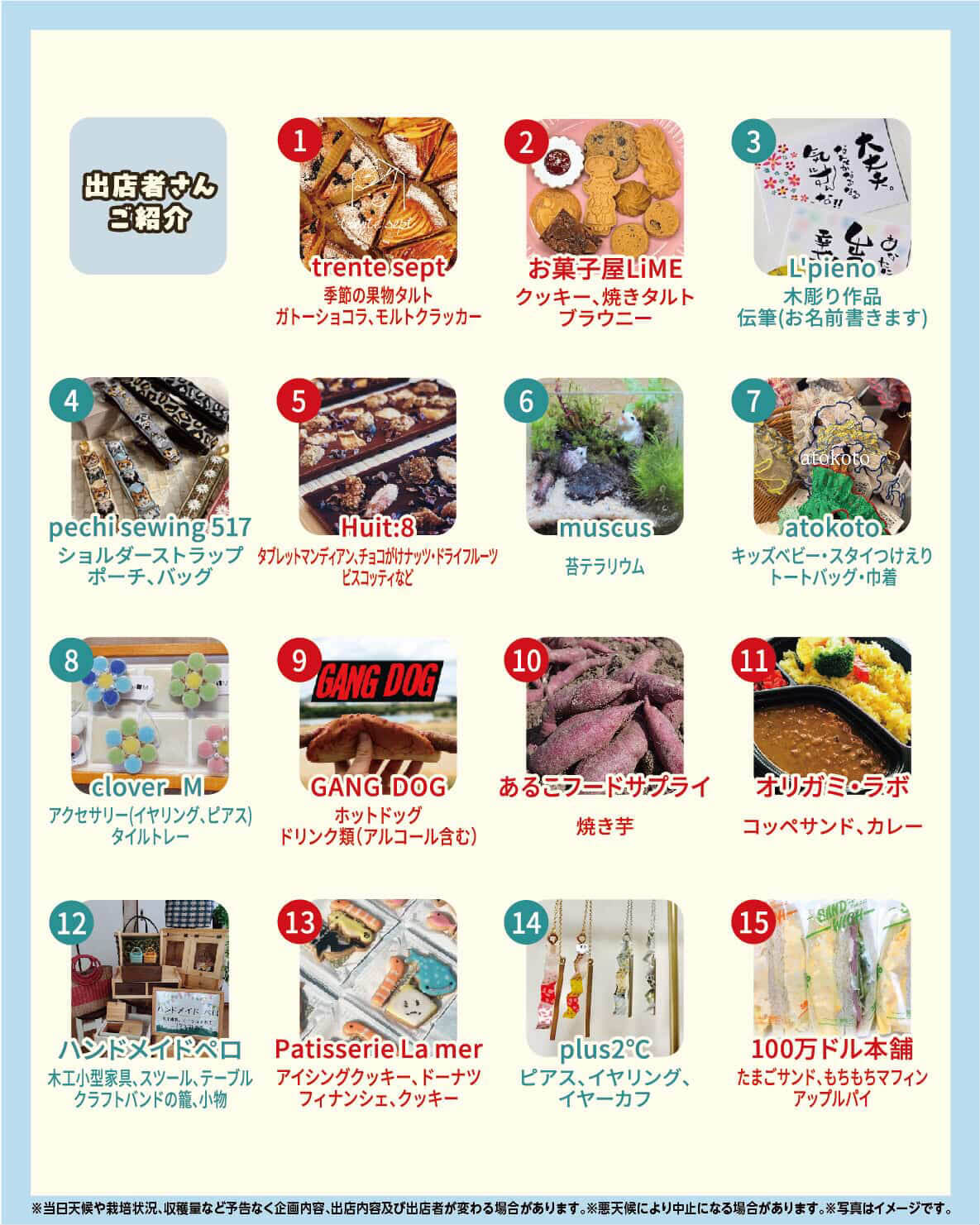 飲食・物販の出店ブースは以下の方々。