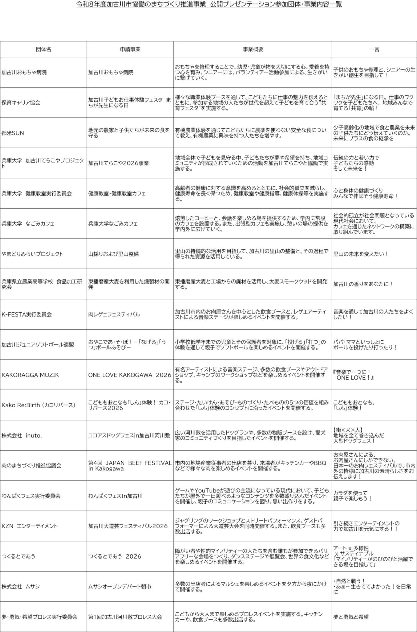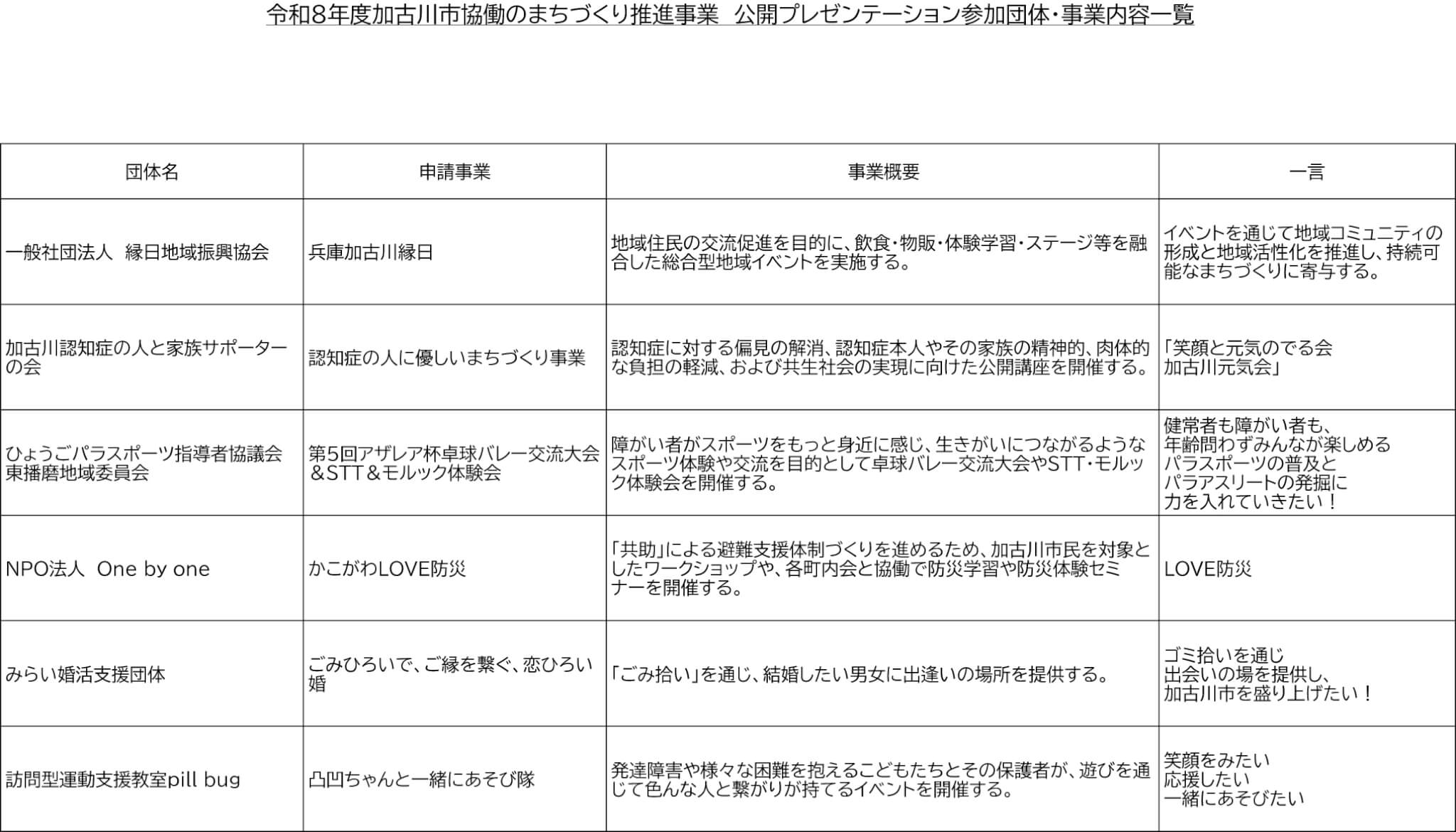 2026年3月16日(月)・3月17日(火)の2日間、加古川市民交流ひろば会議室2にて、加古川市の令和8年度協働のまちづくり推進事業の公開プレゼンテーションが開催されます!