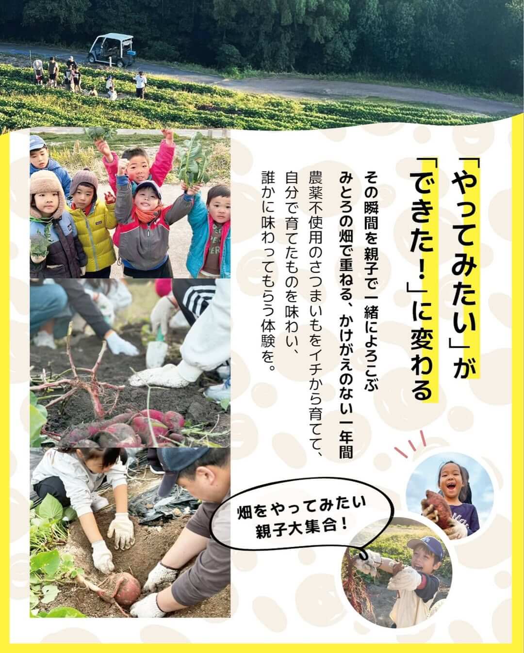 親子でひとつのことを一年かけてやり遂げる体験って、なかなかできないですよね。農作業という非日常の中で、子どもの「できた!」をたっぷり積み重ねられるこのプログラム、気になる方はぜひチェックしてみてください!