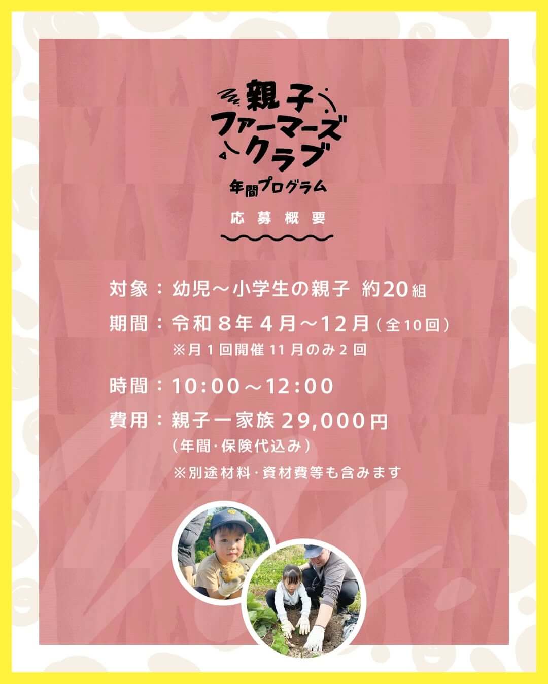 2026年4月から12月まで全10回のプログラムで「みとろ親子ファーマーズクラブ」が開催されます!