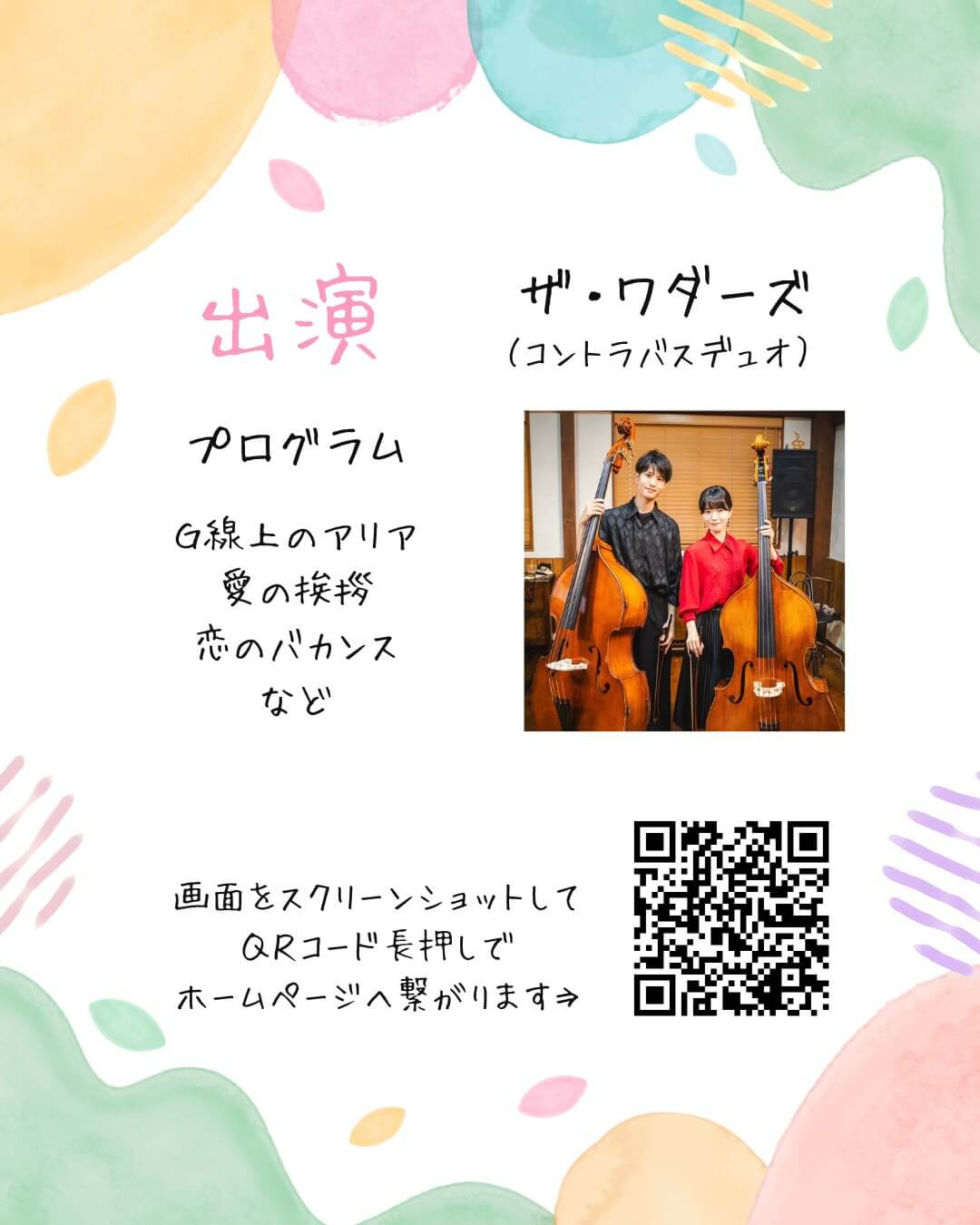 出演はコントラバスデュオ「ザ・ワダーズ」。