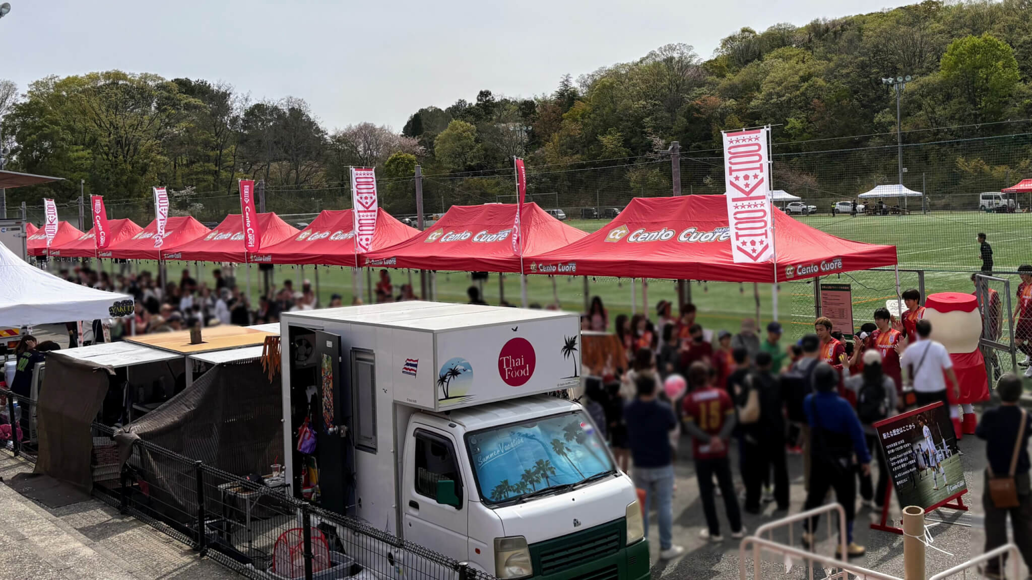 今シーズンも日岡山公園の試合ではムサシオープンデパート朝市がコラボ開催! 飲食も充実です!
