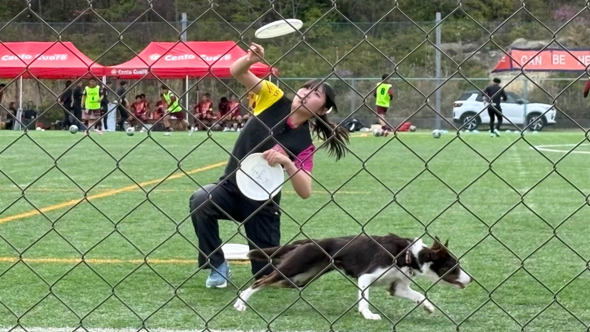 ハーフタイムにはドッグショーと和太鼓演奏が行われ、会場のムードを保ちます。