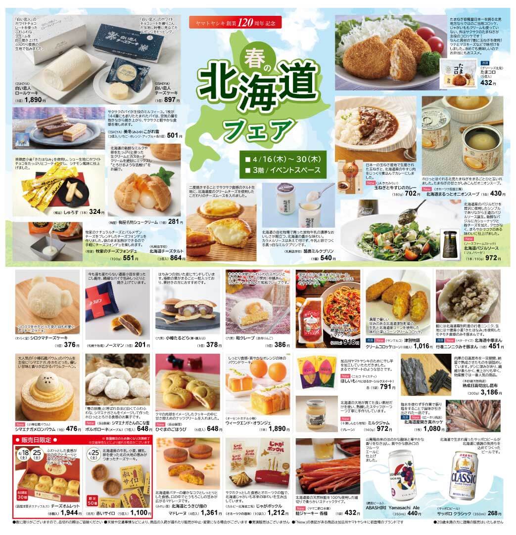 4/16(木)~4/30(木)春の北海道フェア at 加古川ヤマトヤシキ3階イベントスペース