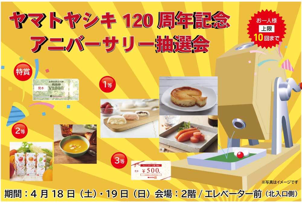 4/18(土)4/19(日)ヤマトヤシキ120周年記念アニバーサリー抽選会