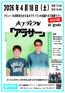 4/18(土)ホフディランライブ【「アラサー」20代最後の全国ご挨拶】at 加古川gratz