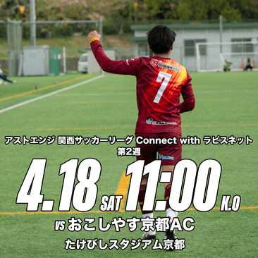 4/18(土)チェントクオーリハリマ vs.おこしやす京都AC at たけびしスタジアム京都(アウェイゲーム)
