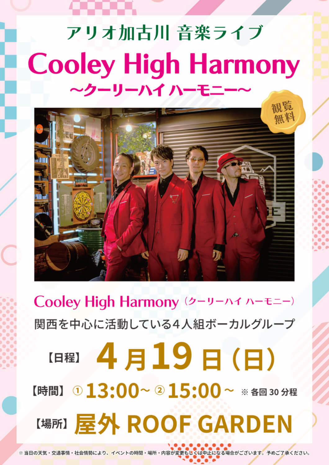 4/19(日)【Cooley High harmony】アリオ加古川 音楽ライブ