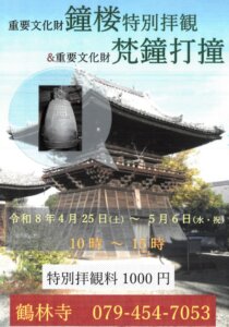 4/25(土)~5/6(水・祝)鐘楼の特別拝観&梵鐘打鐘 at 鶴林寺