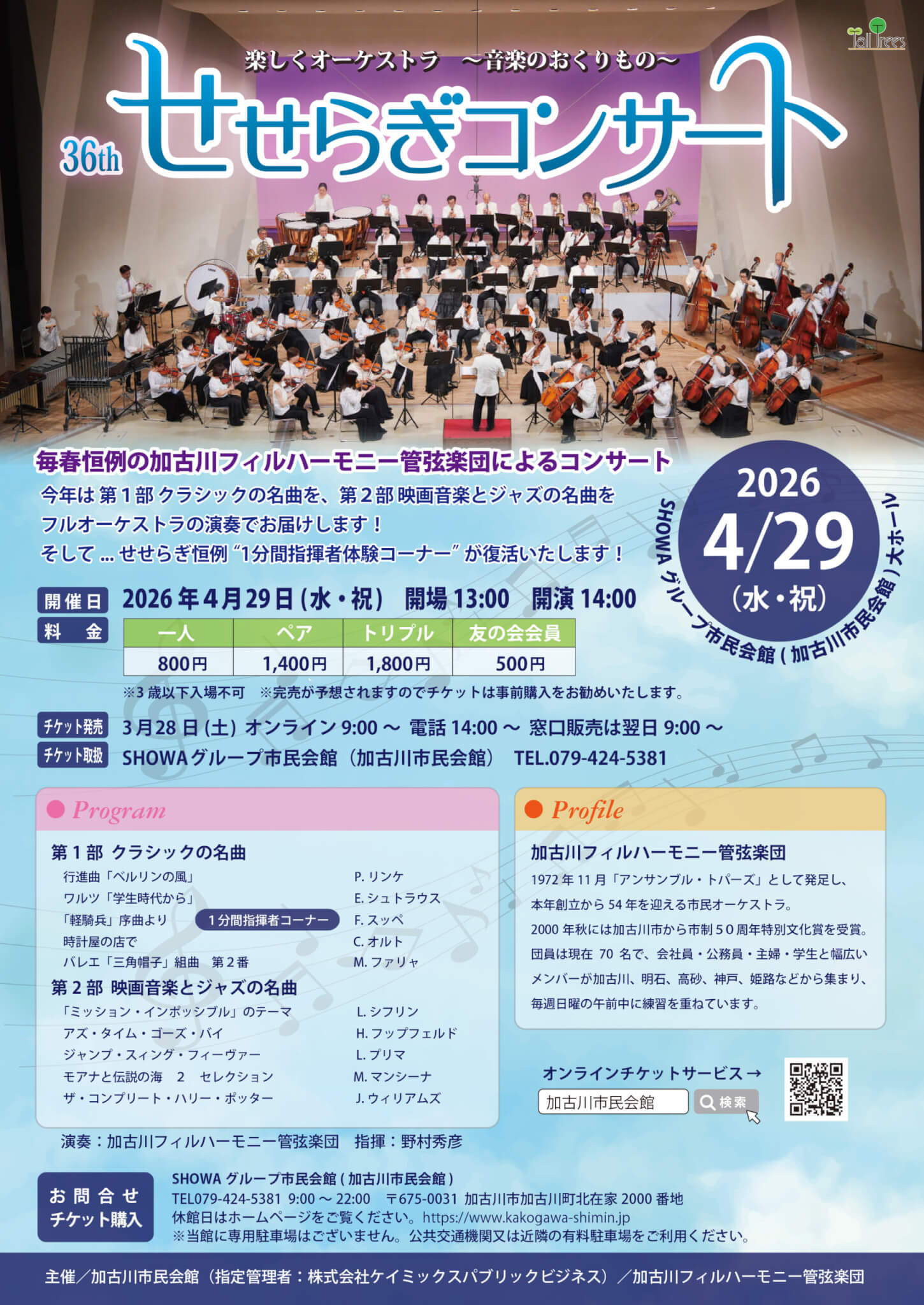 4/29(水・祝)加古川フィルハーモニー管弦楽団 第36回せせらぎコンサート at SHOWAグループ市民会館 大ホール
