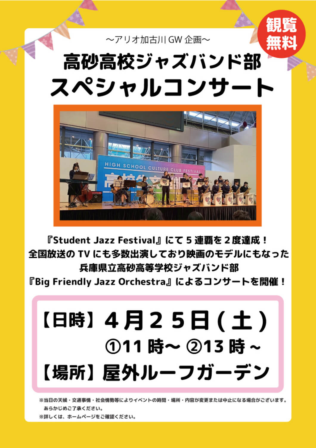 4/25(土)高砂高校ジャズバンド部 スペシャルコンサート at アリオ加古川
