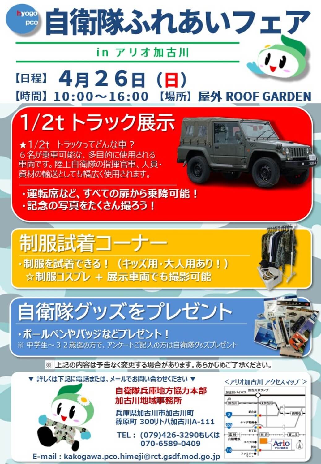 4/26(日)自衛隊ふれあいフェア inアリオ加古川