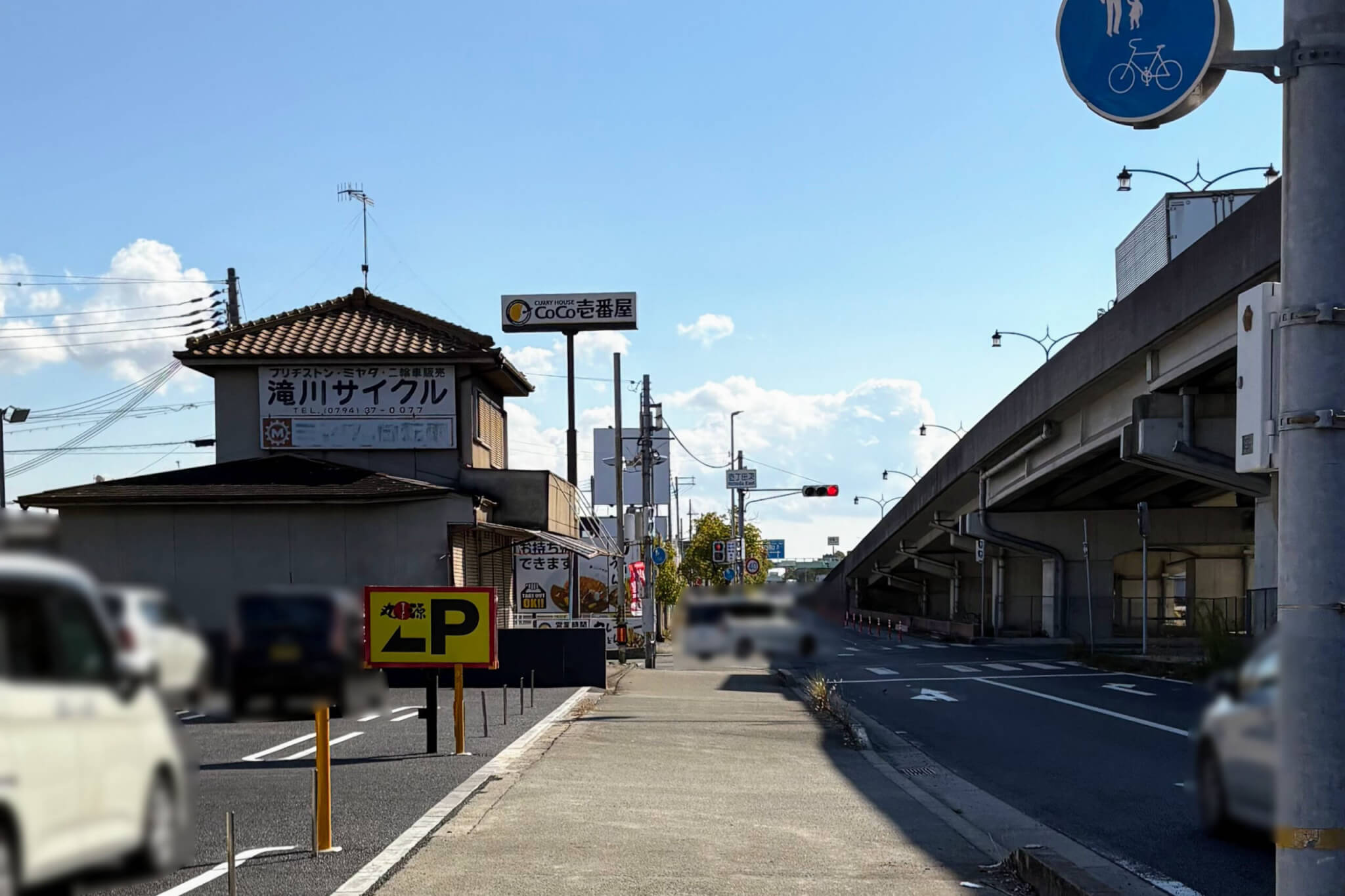 明姫幹線の東行き側道沿いからも駐車場に入れます。CoCo壱番屋 加古川平岡店の少し西あたり。