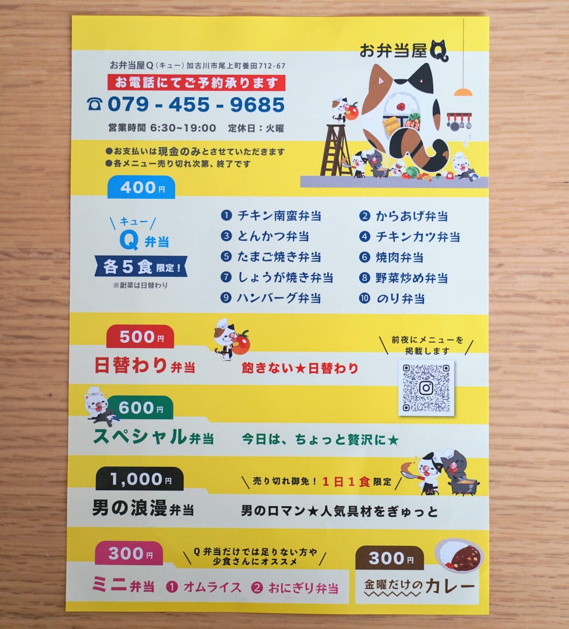 2026年1月7日(水)、尾上町養田の旧浜国沿い大崎交差点に、お弁当屋Q(キュー)がオープンしています! 高砂から相生橋を渡ってすぐの場所です。