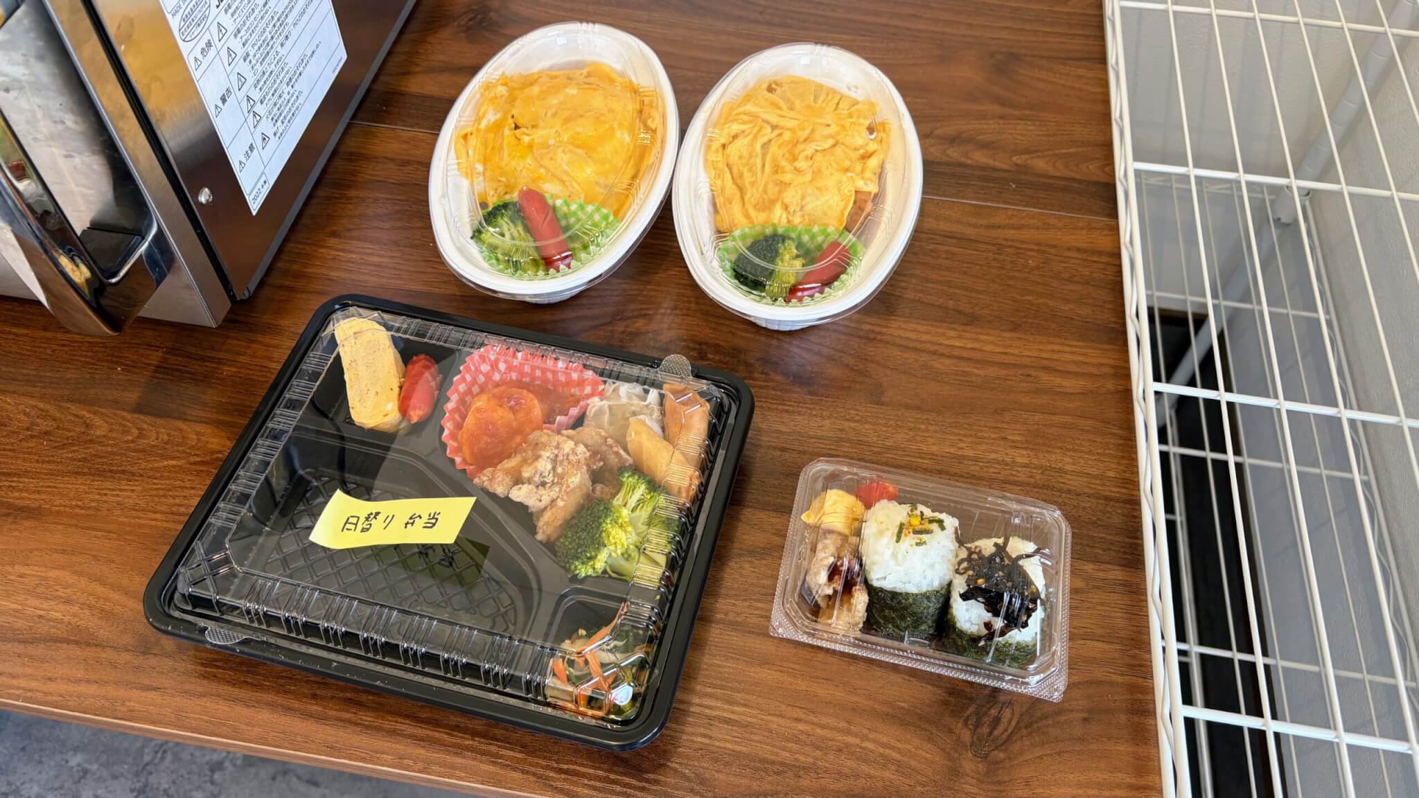 朝10時ちょうどくらいに訪問したので、まだ並んでいませんでしたが、普段は机の上におかずを詰めたお弁当を並べていて、注文が入ってから熱々のごはんを入れてくれる方式だそうです。