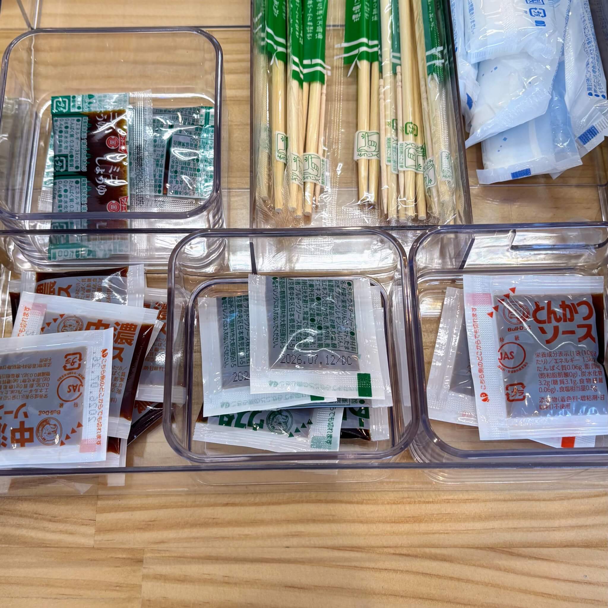 今日の日替わり弁当では必要ありませんでしたが、ソース類も用意されています。