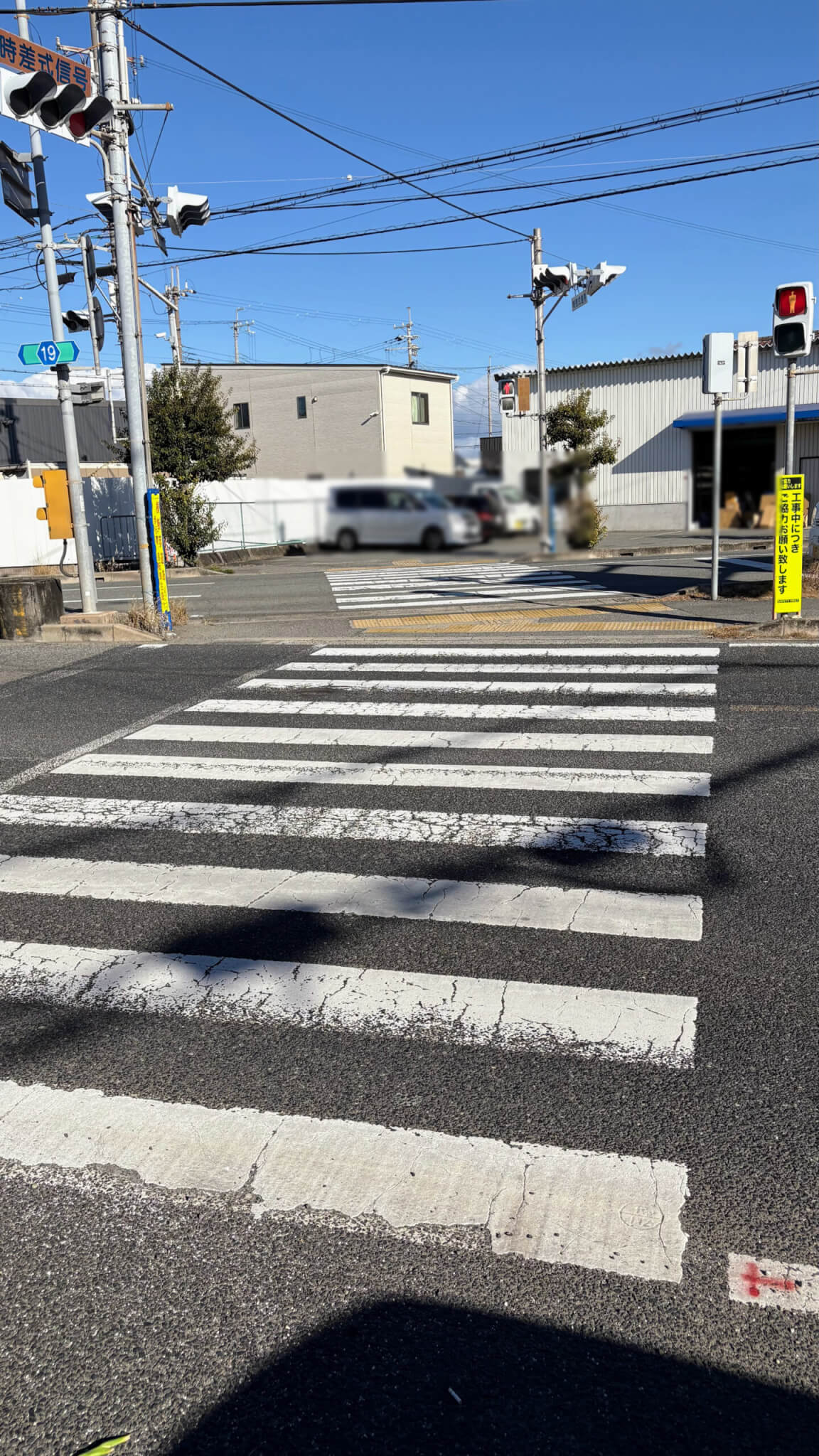 お店の前には横断歩道。三角州のようになっているところに渡れます。