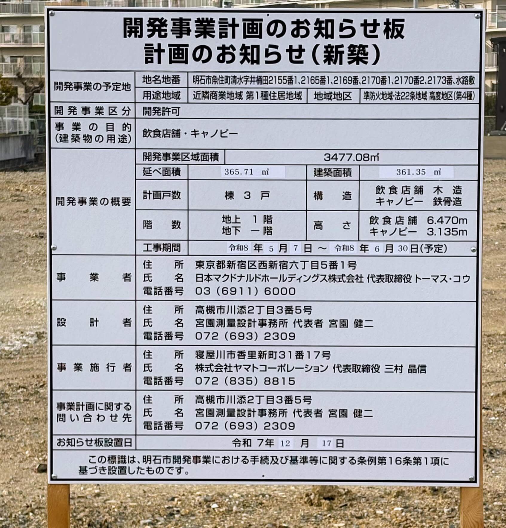 【開店】土山駅近くの国道2号線沿いに新しいマクドナルドを建築予定!【住所は明石市】