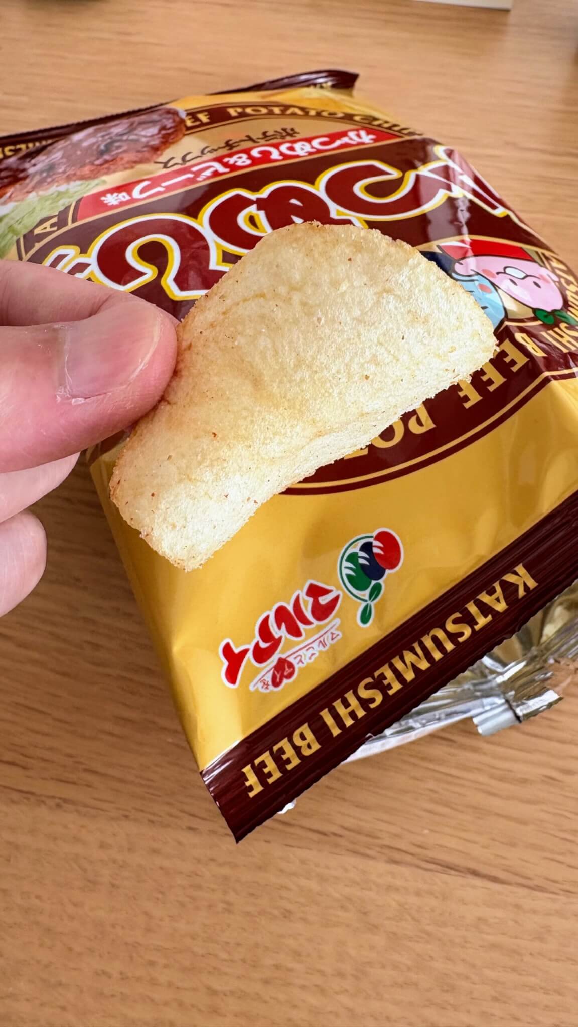 ポテトチップスの食感がヤマヨシのそれで嬉しい。わさビーフの薄い仕上がりのポテトチップスの感じそのまま。