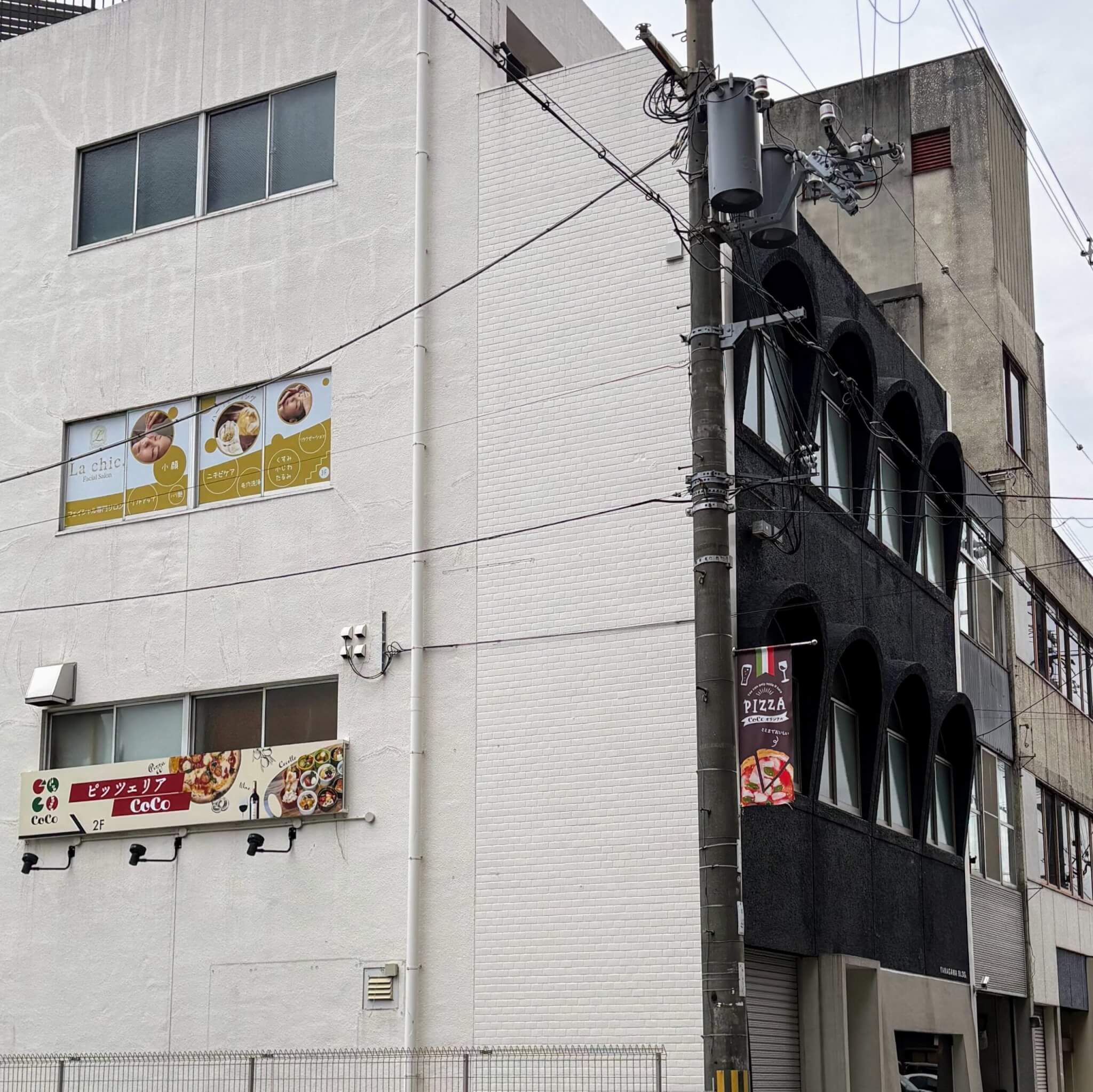 ベルデモール側から見るとピッツェリアCoCoの看板が見えます。