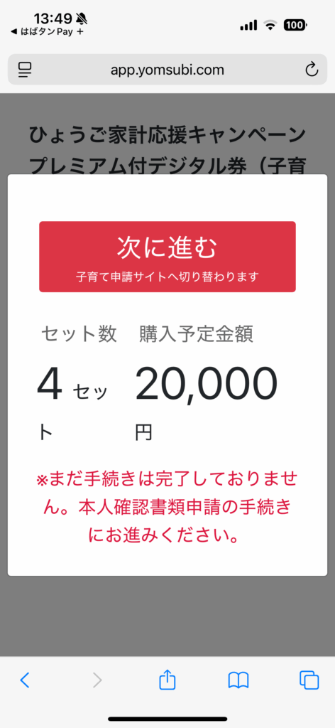 申込手続きを進めていくと、途中で子育て申請サイトへ切り替わり、本人確認書類の提出を行います。