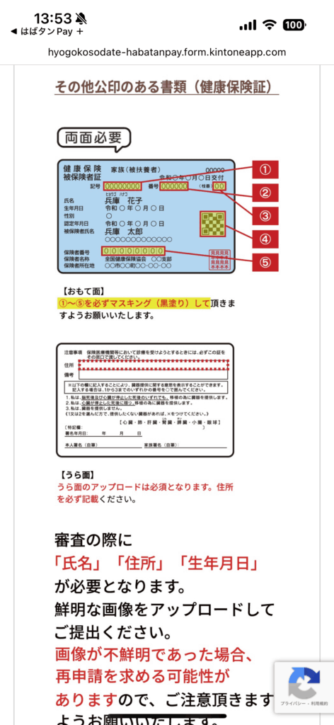 健康保険証は表面の5ヵ所のマスキング(黒塗り)が必要なので、手間がかかりそうです。