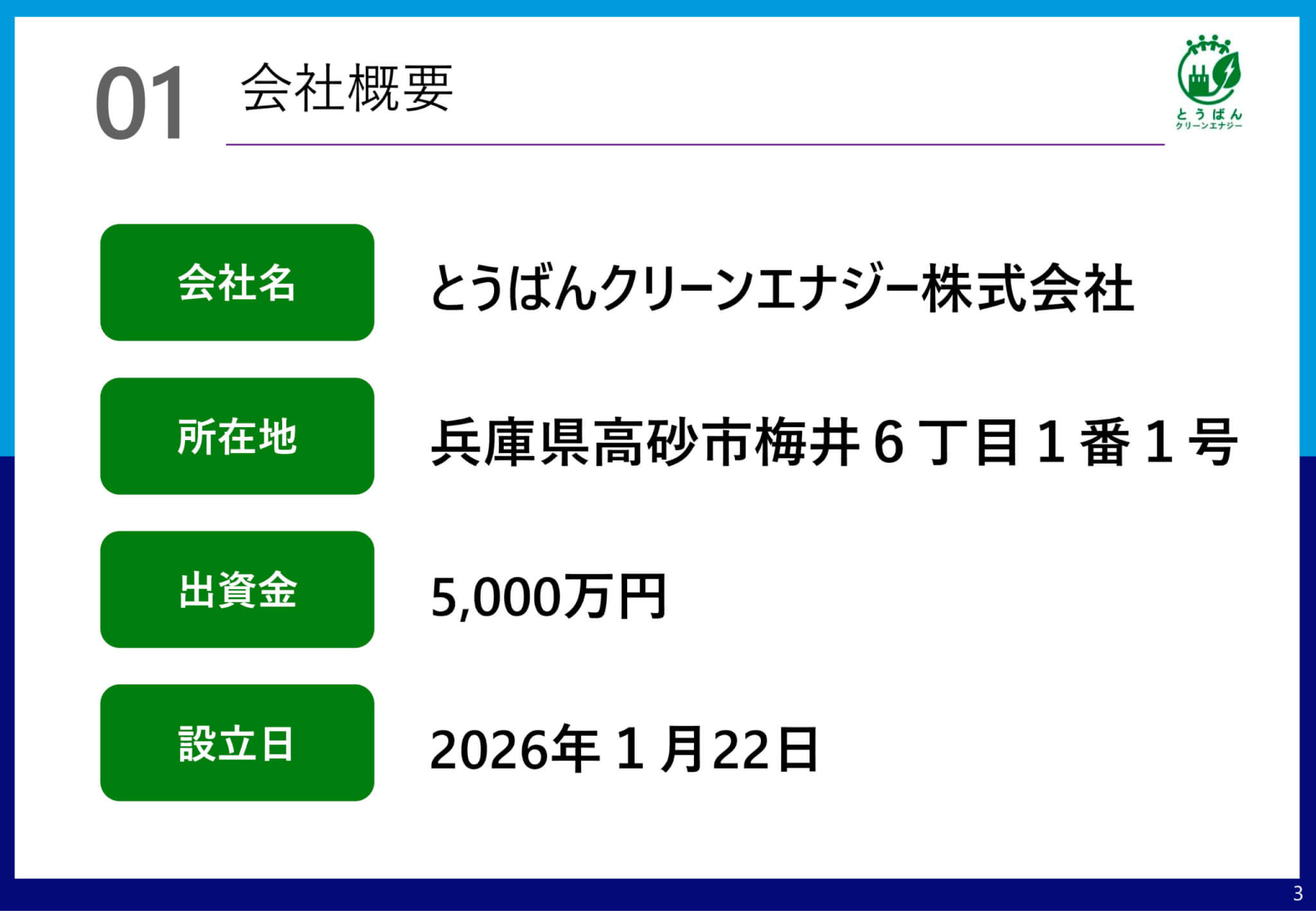 2026年1月22日、加古川市・高砂市・稲美町・播磨町の2市2町とパシフィックパワー株式会社・但陽信用金庫・兵庫南農業協同組合が出資して、地域新電力会社「とうばんクリーンエナジー株式会社」が設立されました!