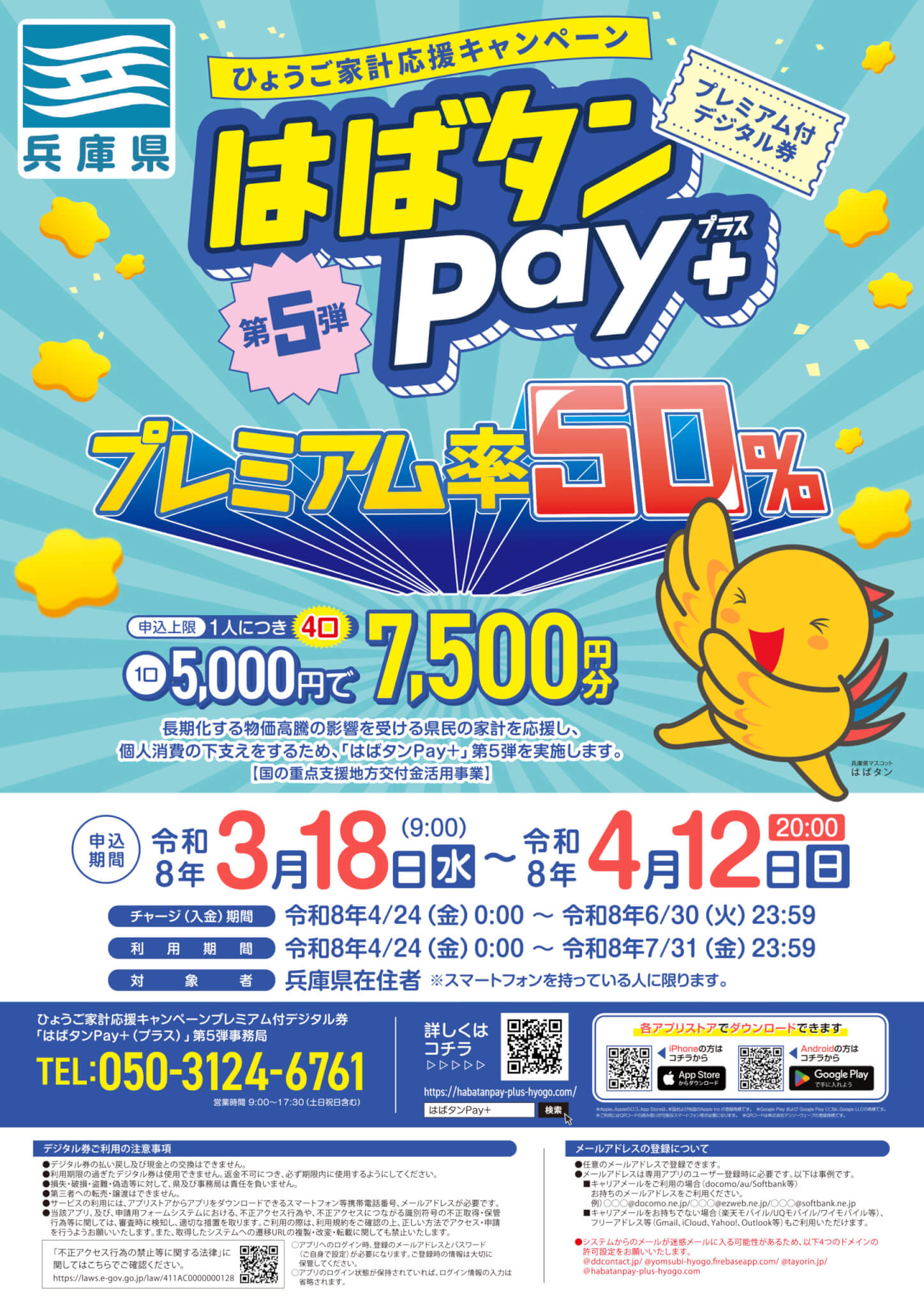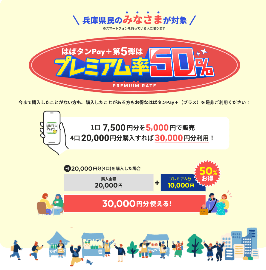 兵庫県が行う「ひょうご家計応援キャンペーン プレミアム付デジタル券 はばタンPay+(プラス)第5弾」の詳細が発表されています!