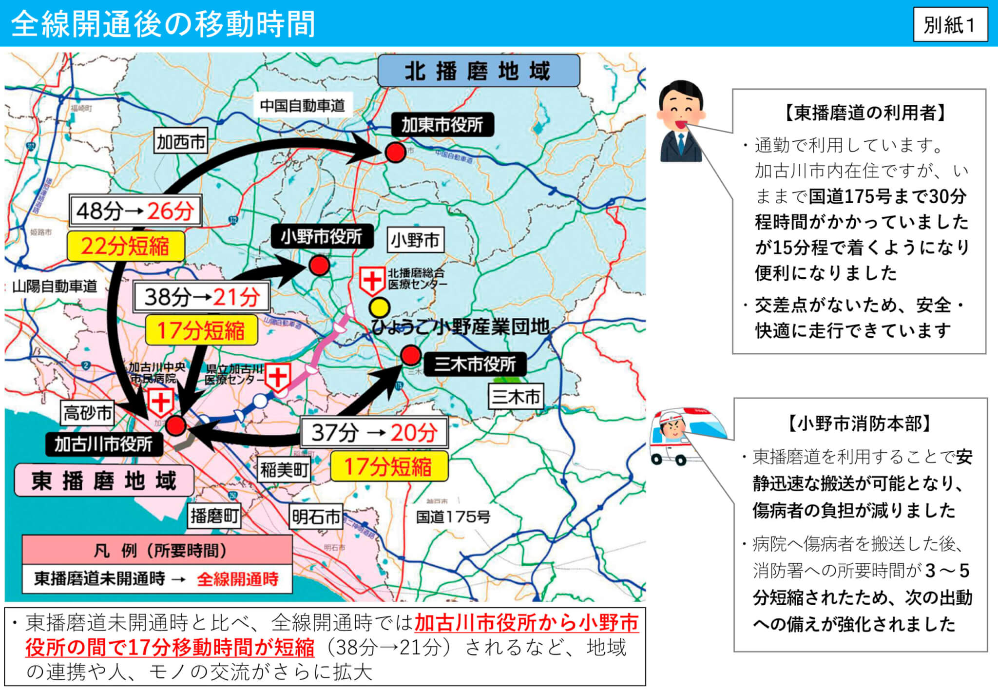 • 加古川市役所 〜 小野市役所:38分 → 21分(17分短縮)
