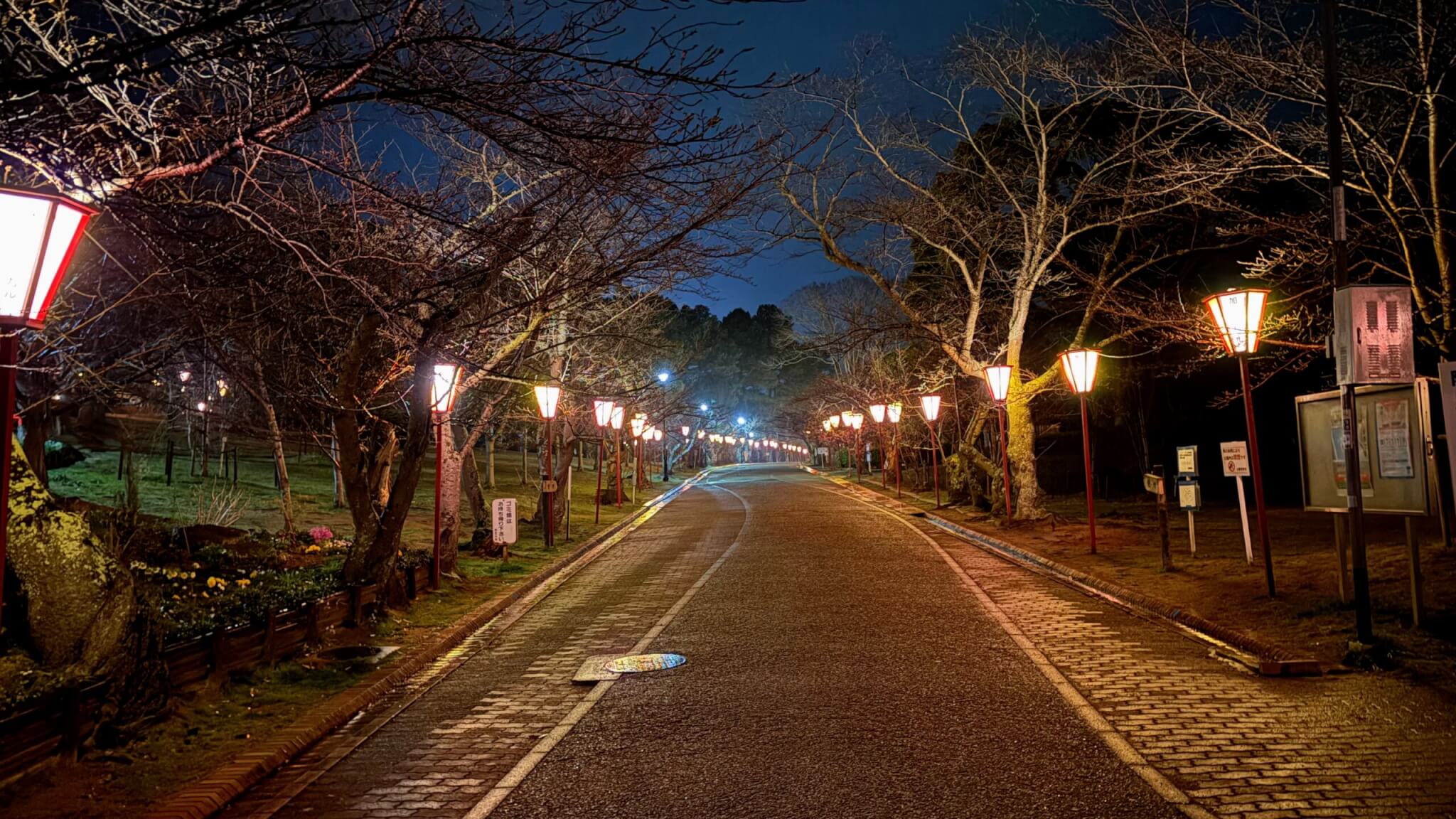 桜も見頃になった日岡山公園。ぼんぼりライトアップは3月20日から5月6日まで。夜桜見物にもぜひ!